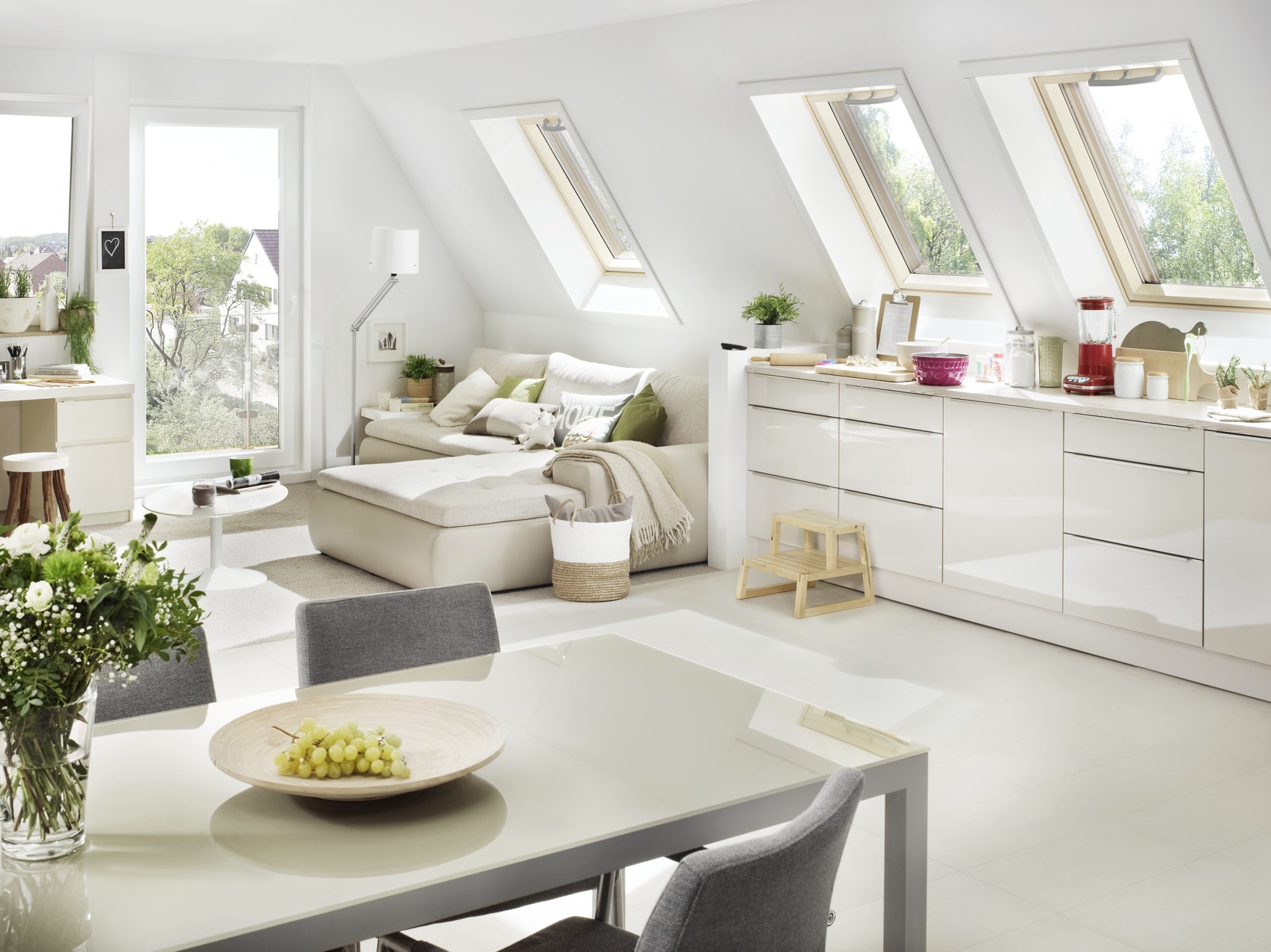 Roto Q-4 H3C S0 on kolmekordse klaaspaketiga, pöördavatav katuseaken, mille käepide asub akna ülaosas.