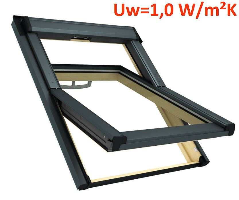 ROTO Katuseaken Q43C 094/140 H100, puit, lakk, 3x klaas (3C), Uw=1,0, g=47%, ülalt avatav