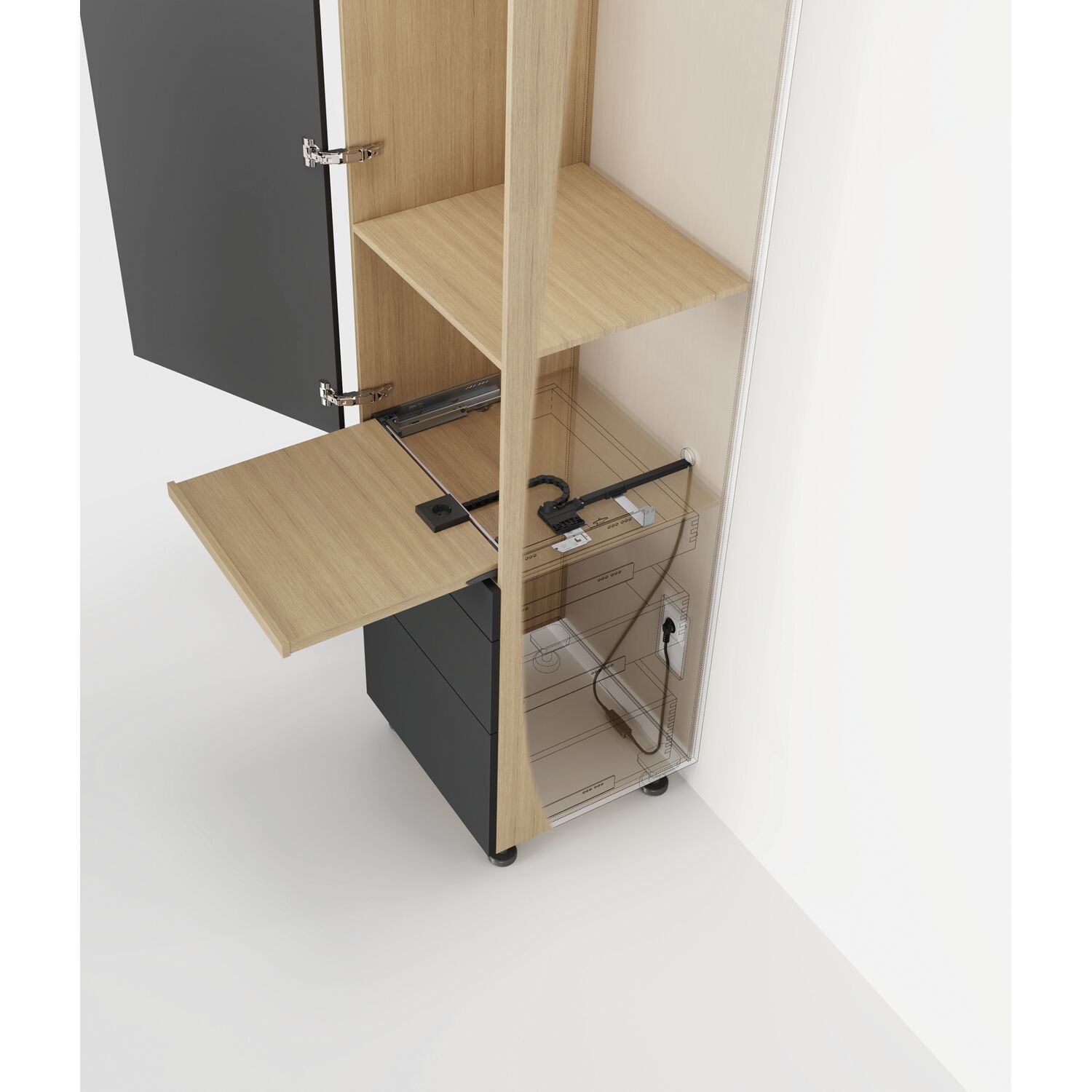 Blum AMPEROS AC on disainitud diskreetseks, kuna see peidab pistikupesad elegantselt sahtlite ja väljatõmmatavate riiulite sisse. Toiteallikas on täpselt seal, kus seda vaja on, võimaldades elektriseadmeid kappides peita, kuid alati laetuna ja käepärast hoida. Lisaks on AMPEROS AC sama lihtne paigaldada nii järelpaigaldamiseks kui ka uue paigaldamiseks.